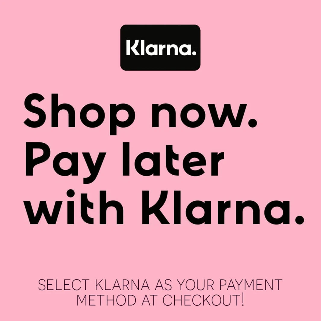 Split the cost of your purchase and pay in 3 payments. Interest Free. Select Klarna at check out!